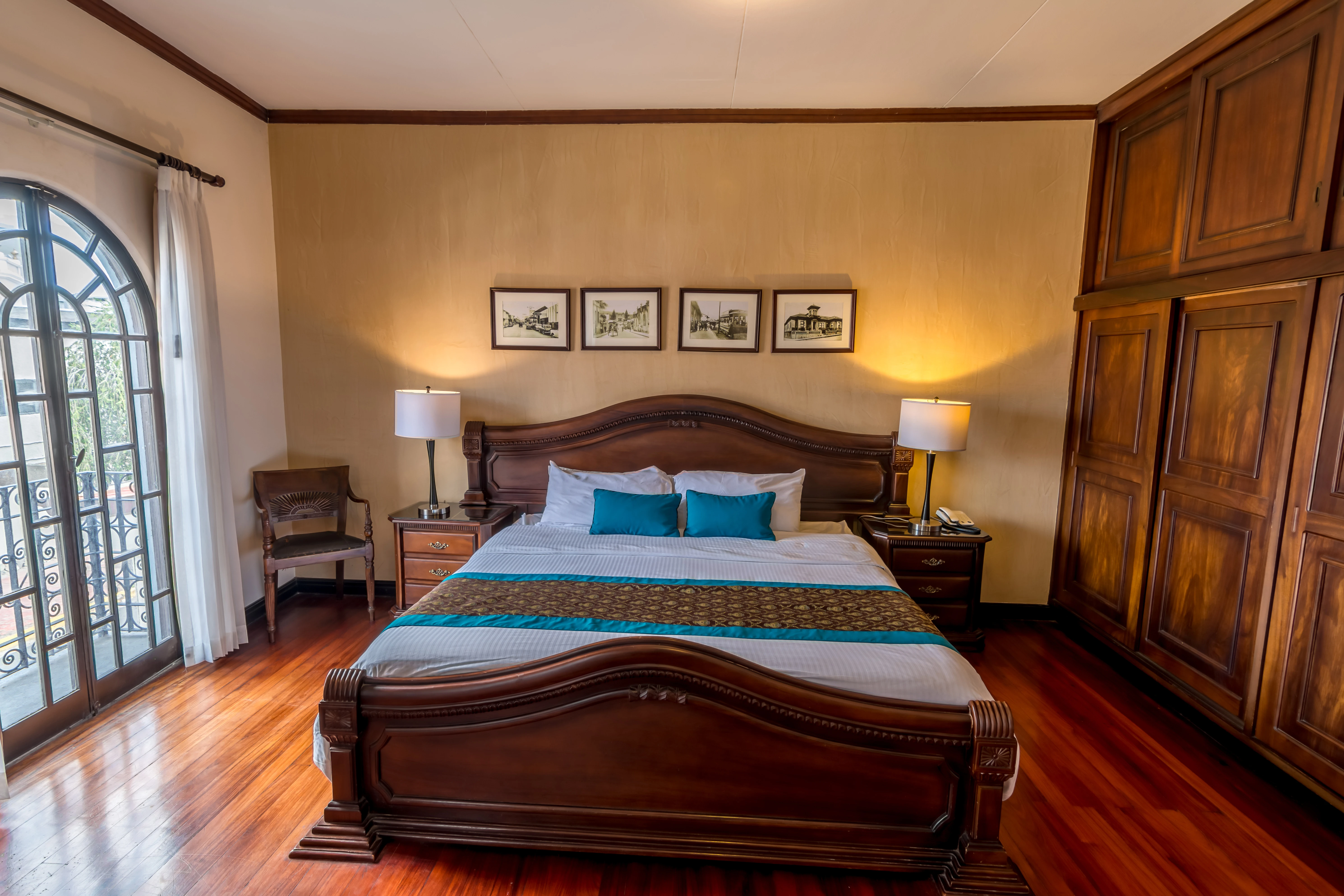 Nuestra opción más amplia para familias y grupos. La Habitación Cuádruple ofrece dos camas dobles, aire acondicionado, Wi-Fi, TV por cable y baño privado. Todo el espacio necesario para disfrutar una estadía cómoda en el corazón de San José, rodeados de la arquitectura colonial que distingue al hotel.